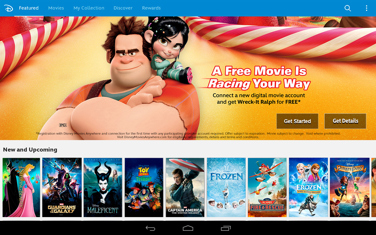 In Disney Movies Anywhere, consumers can explore Disney's library of over 400 active digital titles from Disney, Pixar, and Marvel; preview upcoming offerings and enjoy hours of free new and exclusive short-form content; and discover curated content based on their individual preferences. In addition to browsing titles available for purchase, consumers can redeem Digital Copy codes found in Disney, Pixar, and Marvel Blu-rays and DVDs directly in Disney Movies Anywhere, as well as earn Disney Movie Rewards points for digital purchases.