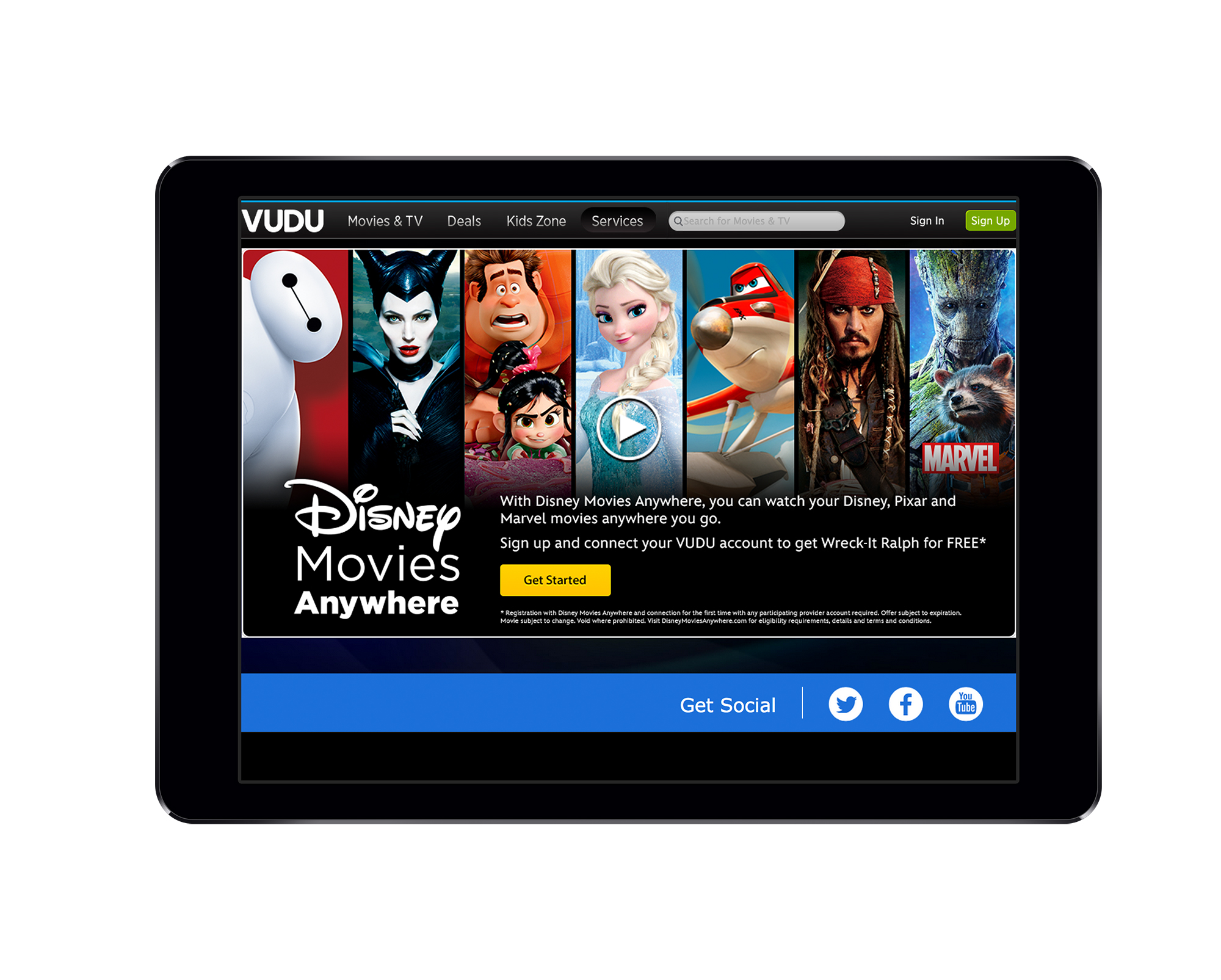Consumers who purchase eligible Disney, Pixar and Marvel titles in Walmart stores or digitally on VUDU can now take their movies anywhere when they unlock their digital copies and connect their Disney Movies Anywhere and VUDU accounts. With VUDU's availability across a wide array of connected entertainment devices and smart TVs, Disney Movies Anywhere users will find it easier than ever to enjoy their movie collections from the comfort of their living room and across their devices and operating systems.