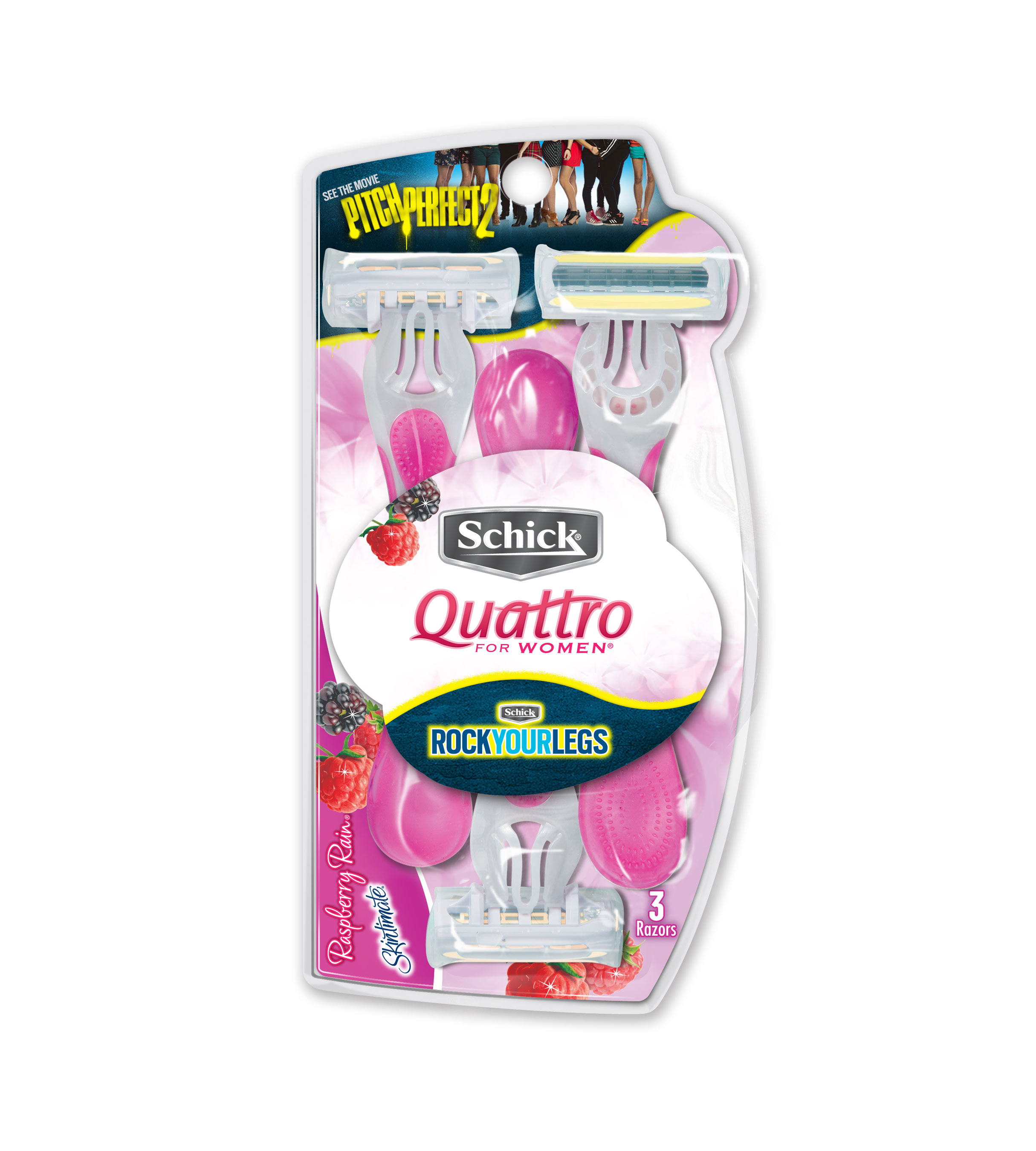 Now Schick and Skintimate are making it easier than ever for women to rock their legs like their favorite Barden Bella! Beginning in April 2015, limited edition Pitch Perfect 2 packaging will be available in stores nationwide for Schick Hydro Silk Razors, Skintimate Shave Gel, Schick Intuition®, Schick Quattro For Women® and Schick Xtreme3®.